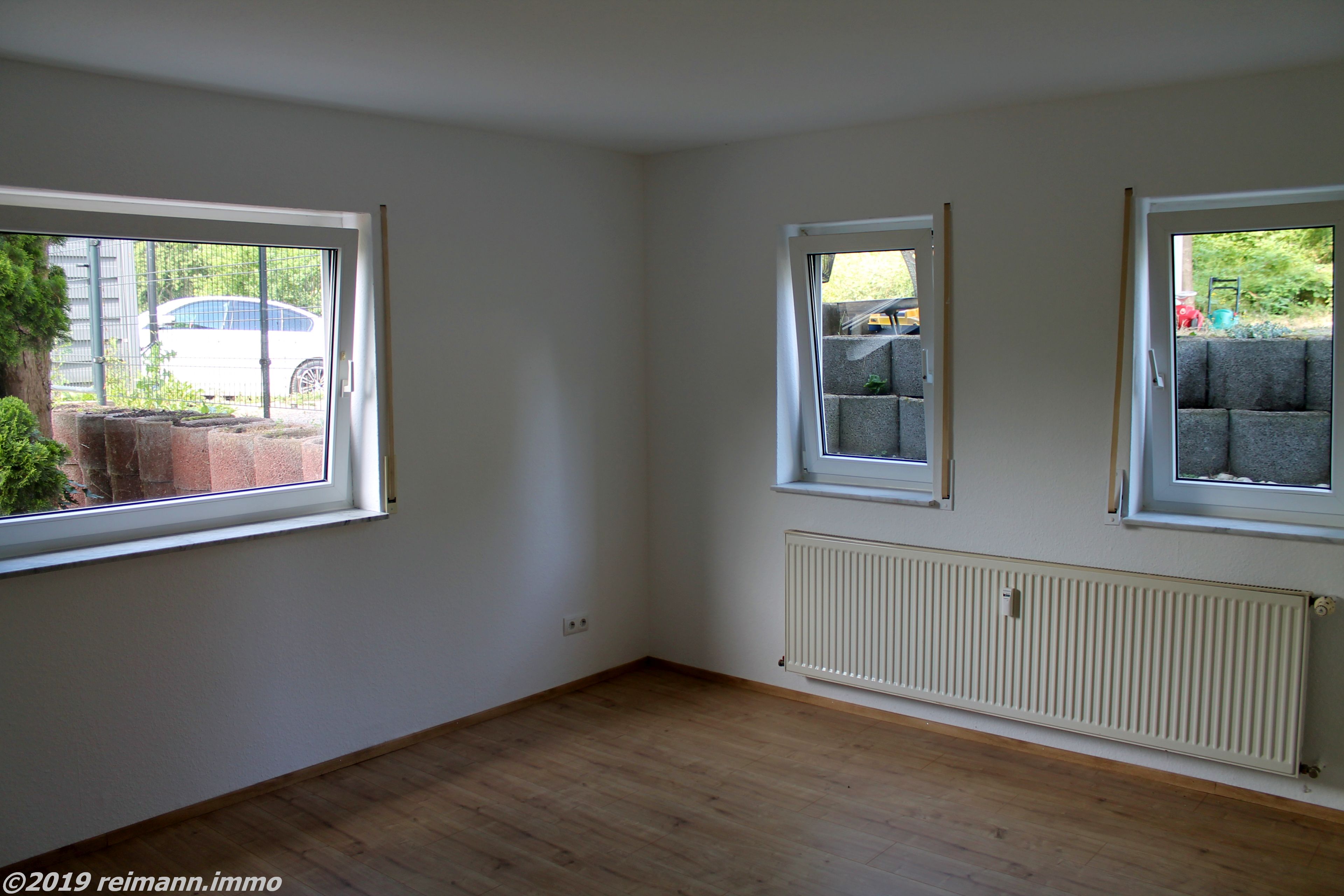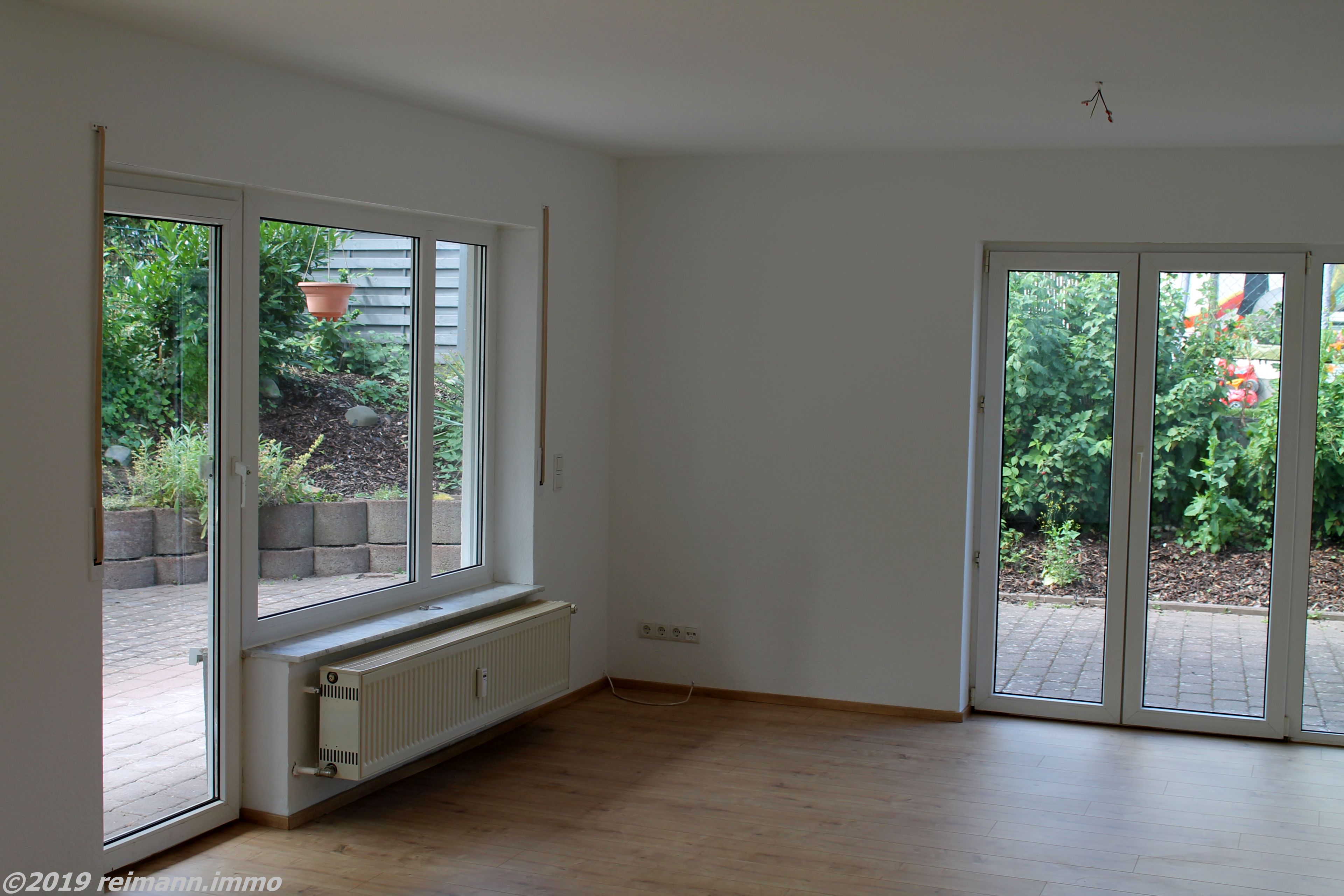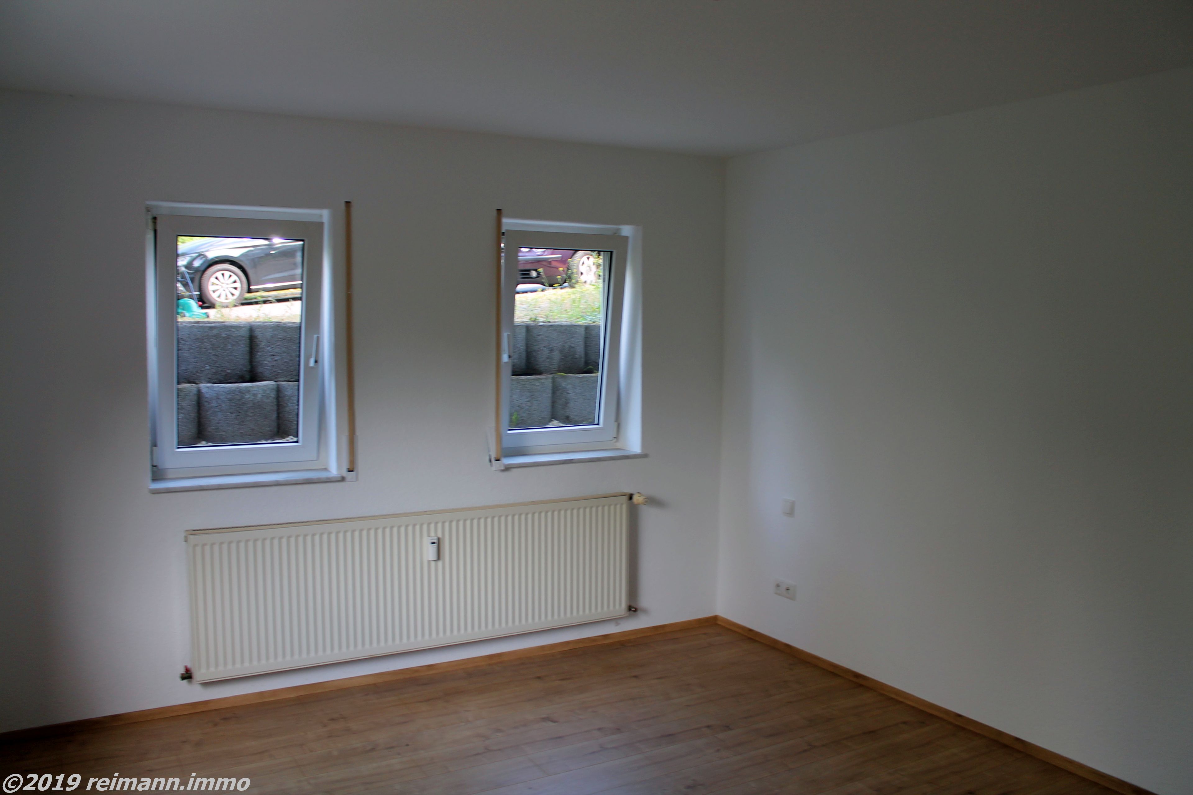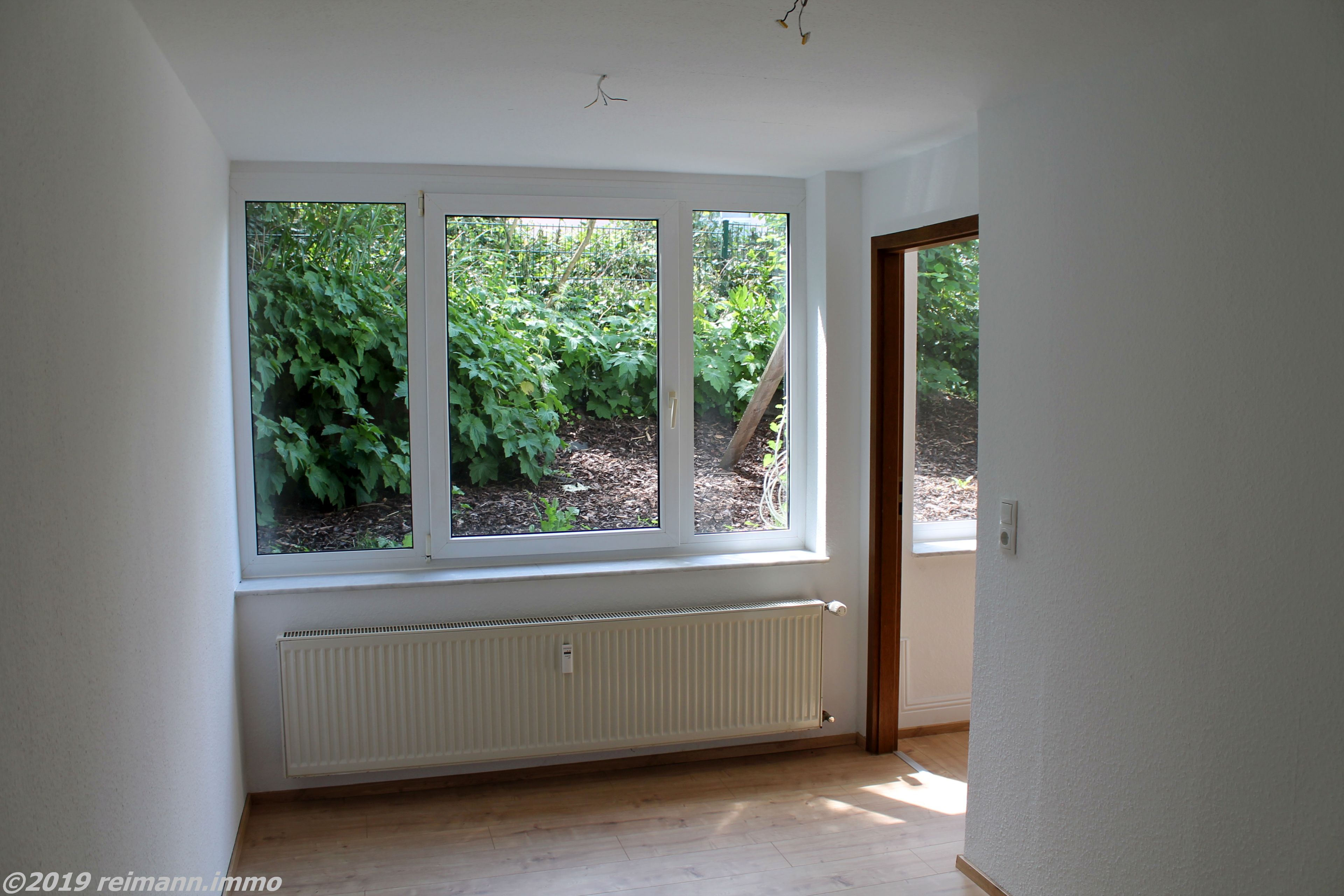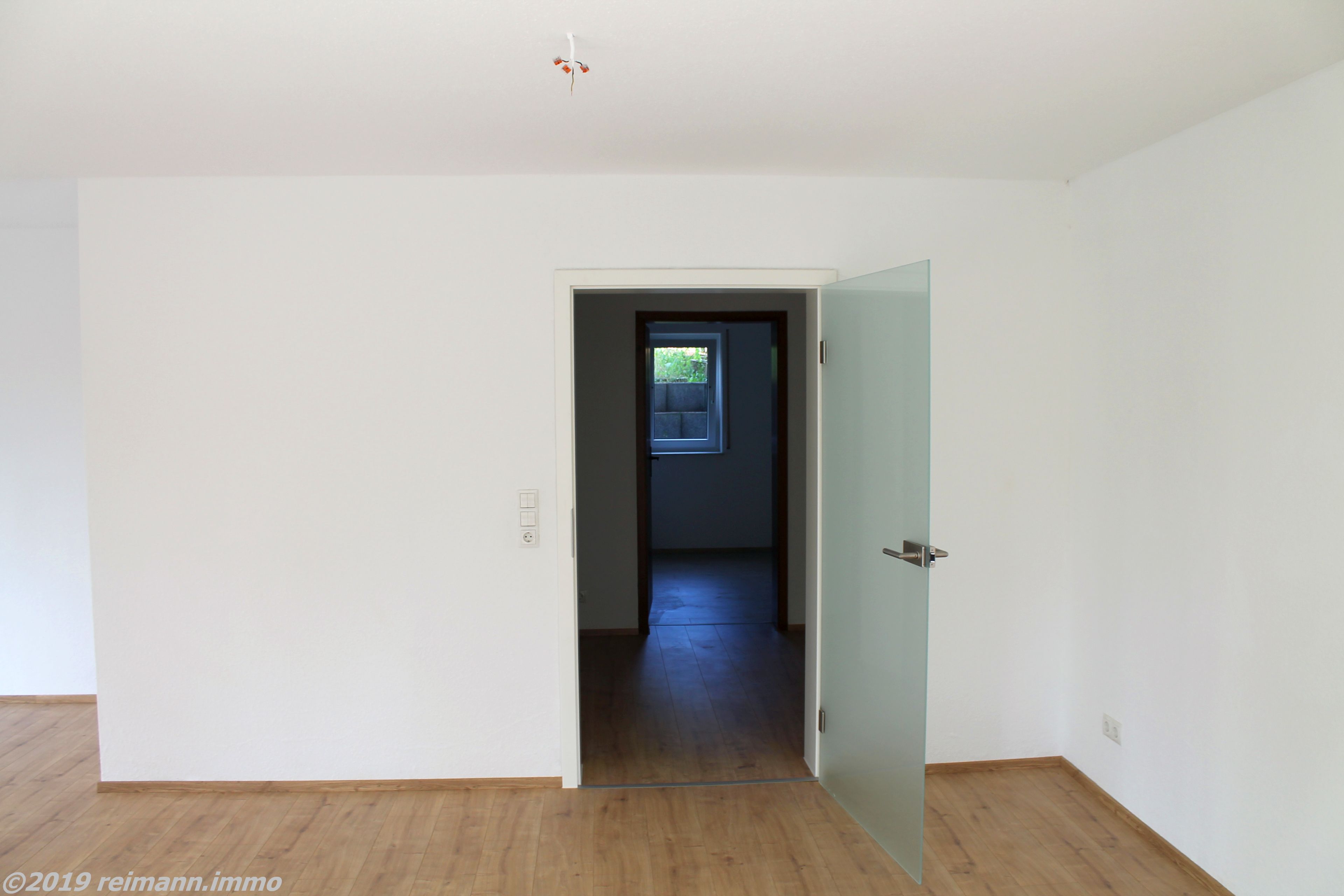 Das Objekt ist in Hanglage errichtet, sie erreichen die Wohnung vom Hauseingang eine halbe Etage tiefer auf Erdgeschossniveau. Sie verfügt über ein geräumiges Wohnzimmer mit Zugang zum Arbeits- oder Kinderzimmer und der Terrasse. Weiterhin bietet sie neben der Küche und dem Badezimmer mit Badewanne ein Gäste-WC, eine Diele mit Garderobenschrank und ein Schlafzimmer.