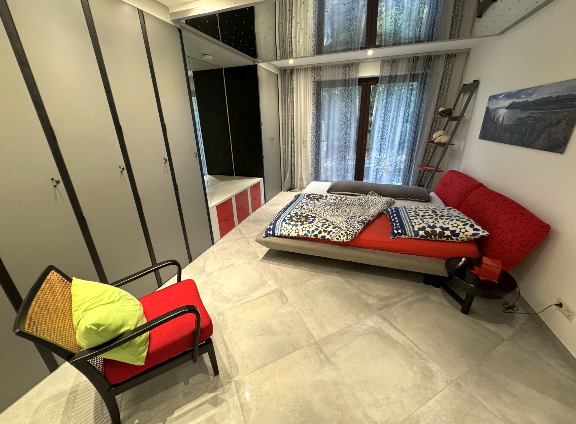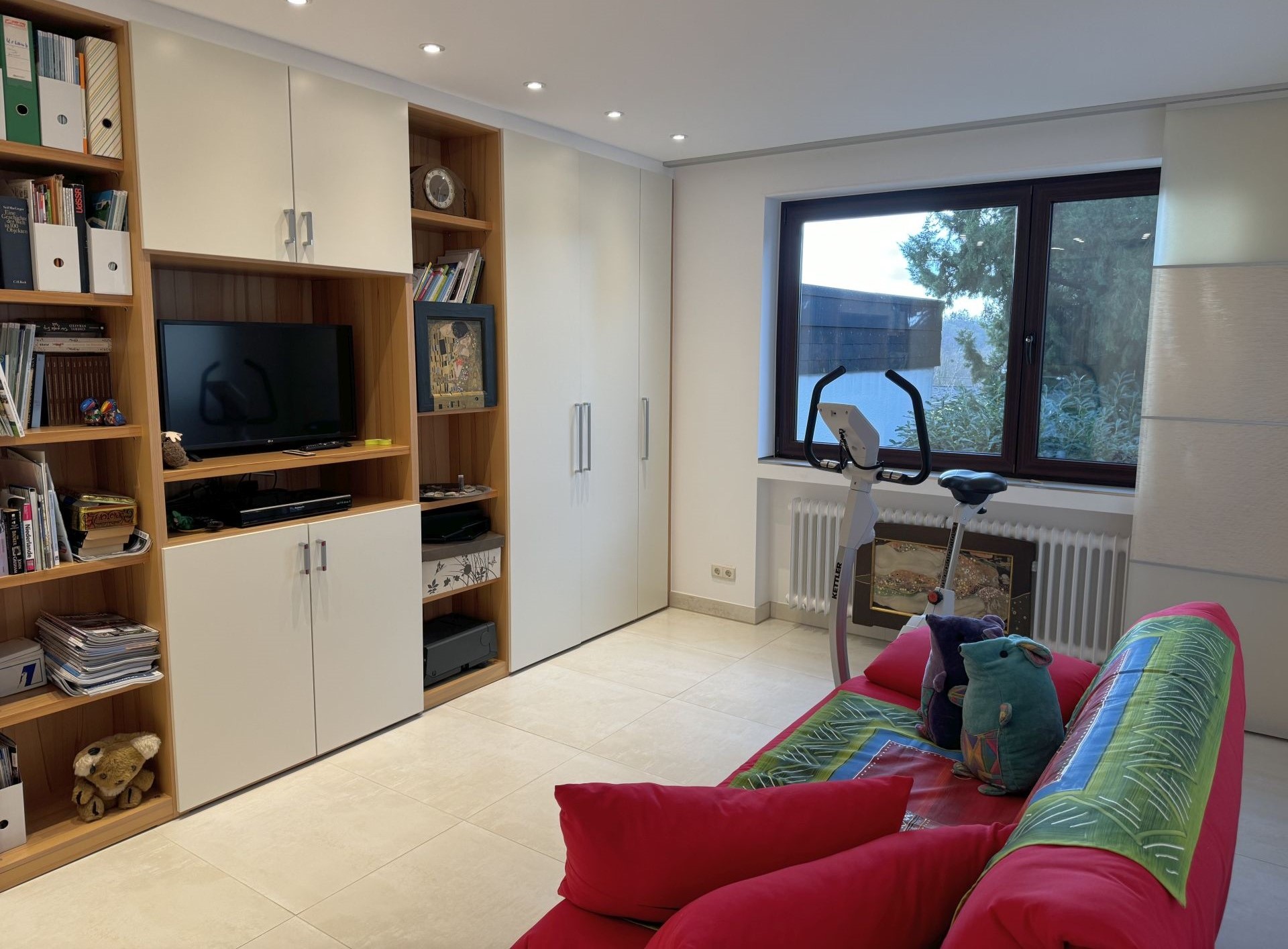 Ein gemütliches Kaminzimmer lädt zu entspannten Abenden ein. Ein separates Schlafzimmer sowie ein vielseitig nutzbares Hobbyzimmer bieten Raum für individuelle Gestaltungsmöglichkeiten. Außerdem bieten Kamin- und Schlafzimmer einen direkten Zugang zu Terrasse und Garten. Der gepflegte Garten mit einem großen Teich schafft eine idyllische Atmosphäre und eignet sich ideal für ruhige Stunden oder gesellige Anlässe im Freien.