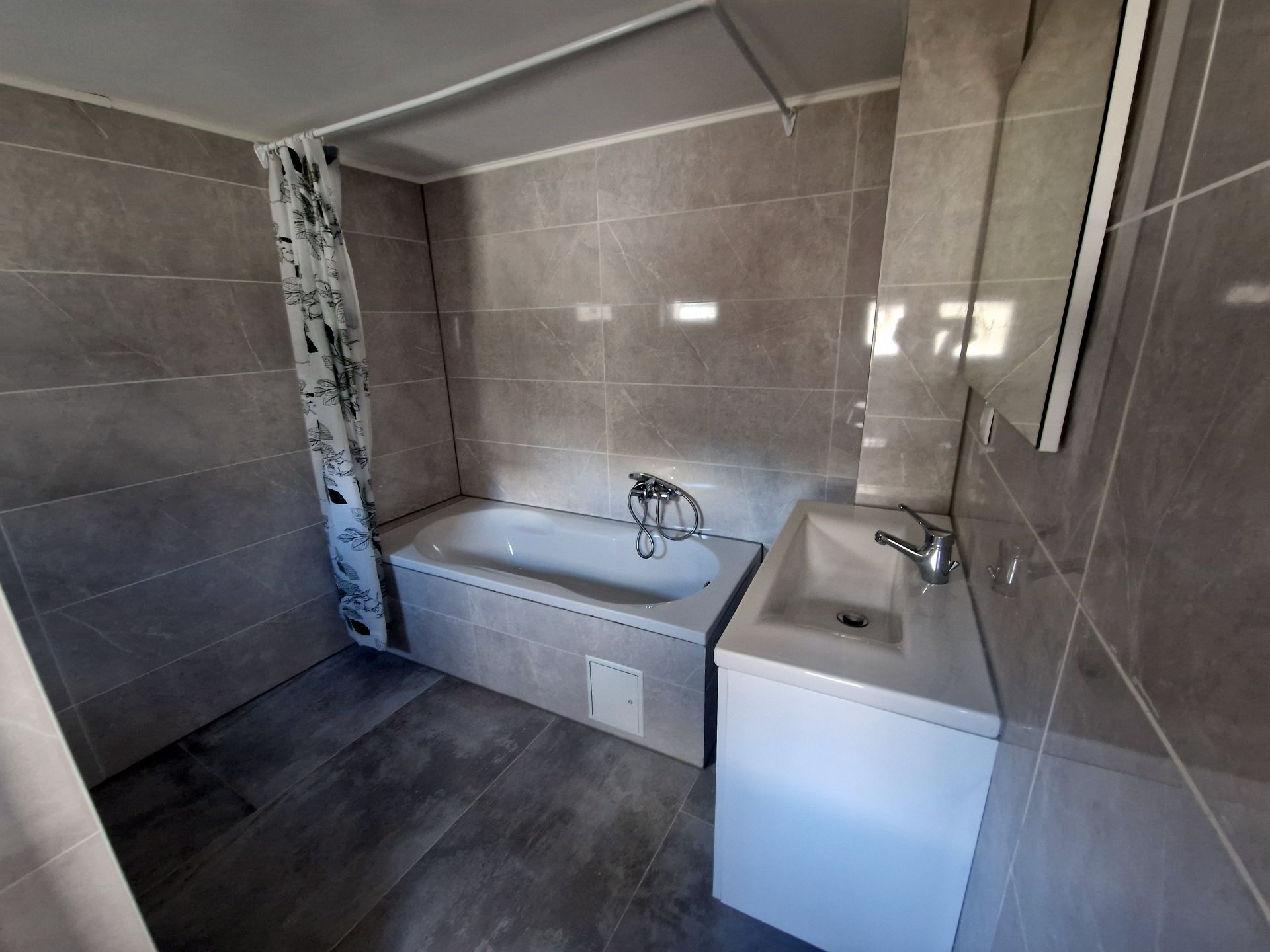 Bad: Das Bad ist gefliest und verfügt über eine Badewanne, ein Waschbecken sowie ein WC.