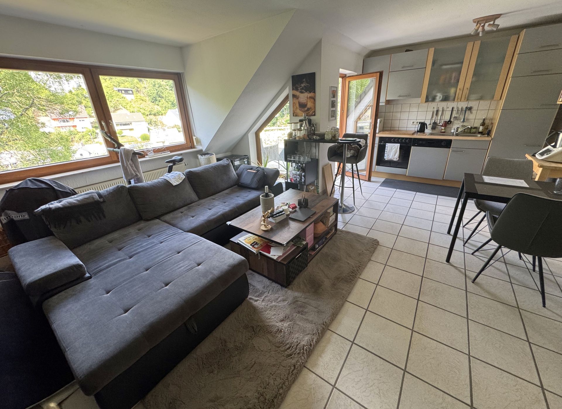 Diese ideal geschnittene 3-ZKB-Wohnung im Dachgeschoss eines Mehrfamilienhauses mit fünf Parteien bietet Ihnen zwei großzügige Schlafzimmer, ein Tageslichtbad mit Badewanne sowie einen Abstellraum. Das Highlight der Wohnung ist das Wohnzimmer mit offenem Wohn- und Essbereich, angrenzender Küchenzeile und Zugang zum Balkon. Dieser bietet Ihnen einen unverbaubaren Blick ins Grüne.