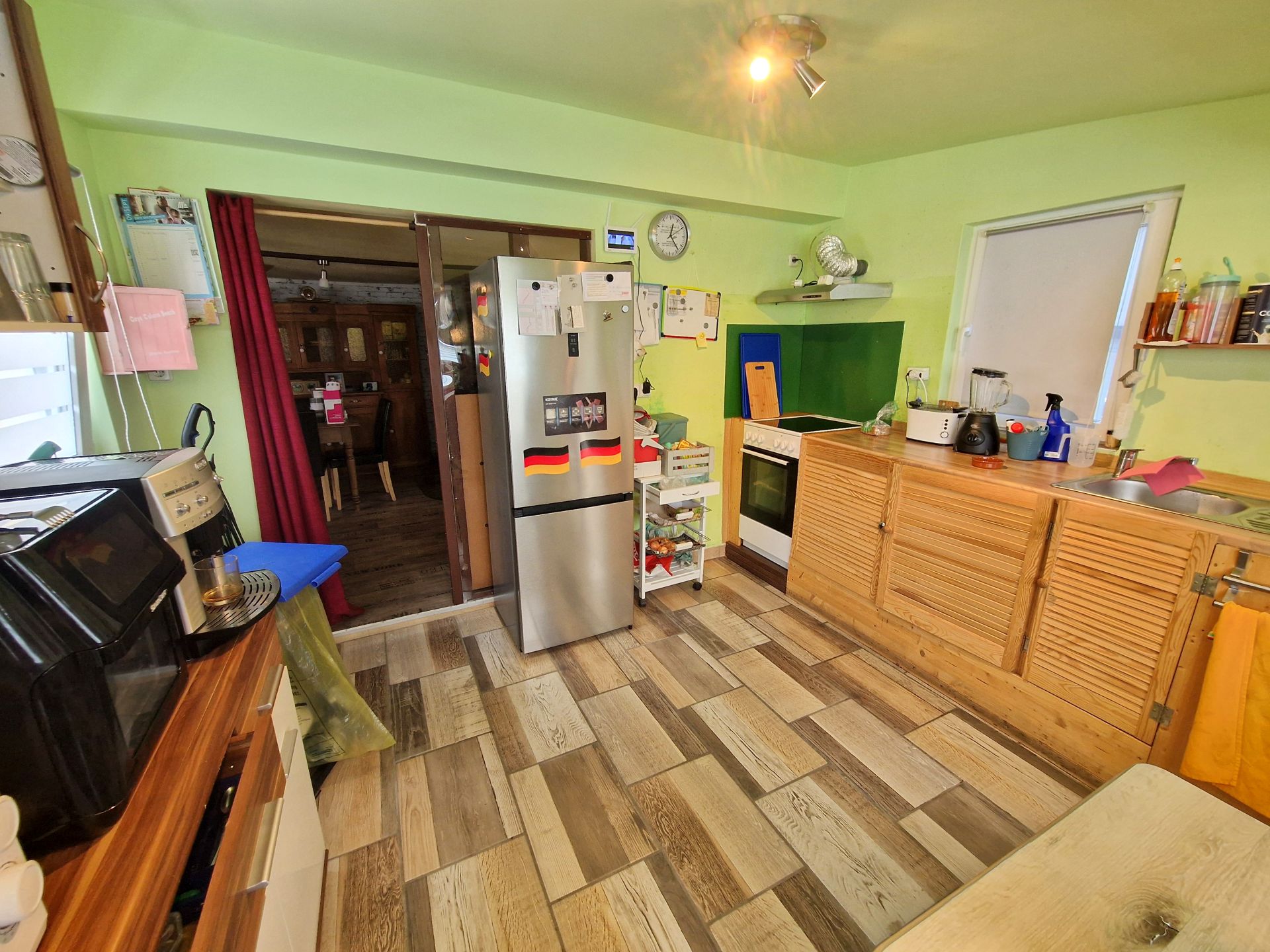 Das Haus erstreckt sich über drei Etagen und bietet insgesamt sechs Zimmer, zwei Badezimmer, eine voll ausgestattete Küche sowie eine separate Kochnische. Es kann sowohl über den Hauseingang im Erdgeschoss als auch über den Balkon betreten werden, der nachträglich zu einem offenen Wintergarten umgestaltet wurde.
