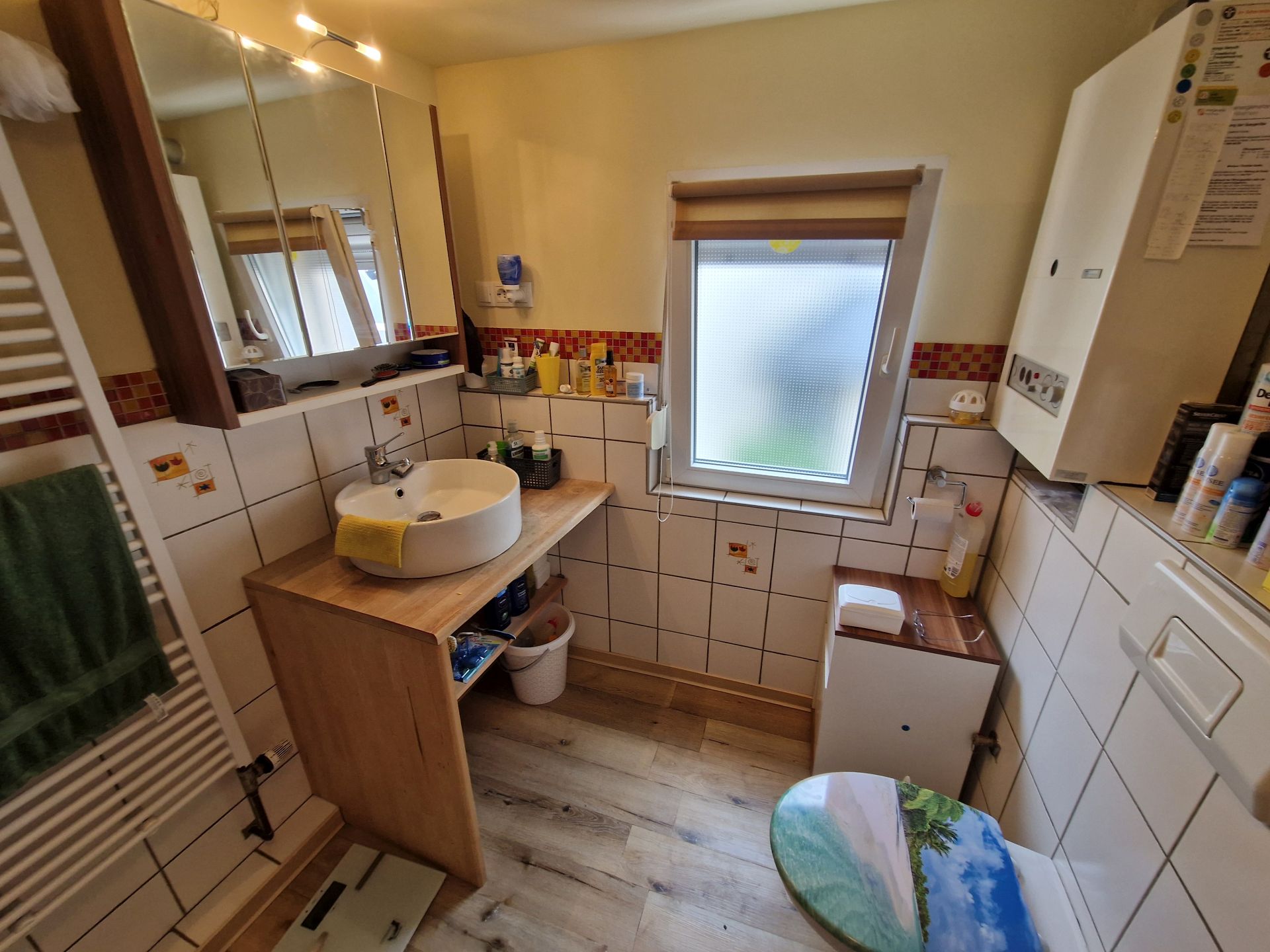Das Erdgeschoss verfügt über zwei Zimmer, ein Badezimmer sowie eine praktische Kochnische und eignet sich daher ideal zur Nutzung als separate Einliegerwohnung, beispielsweise für Familienangehörige oder zur Vermietung.