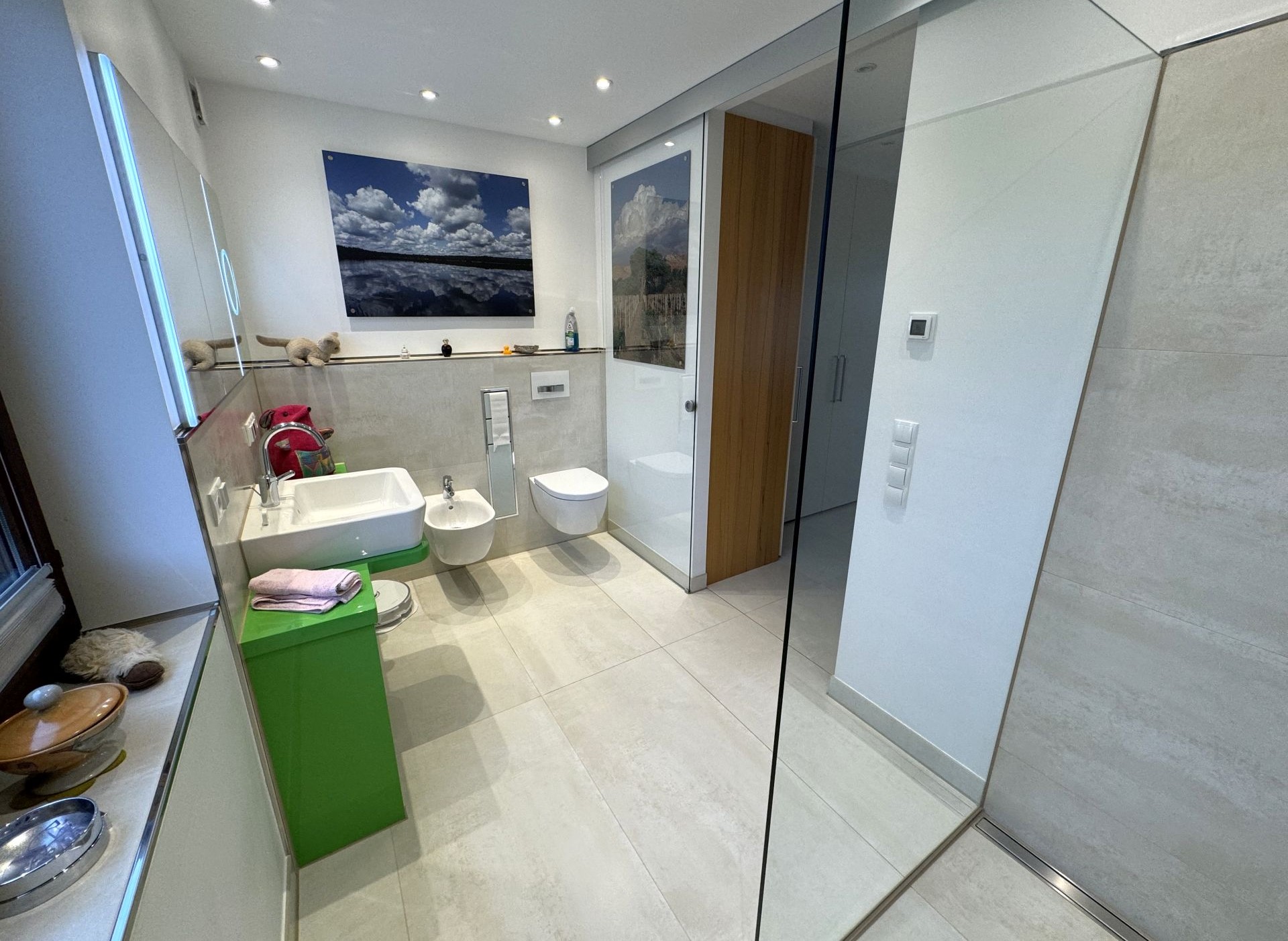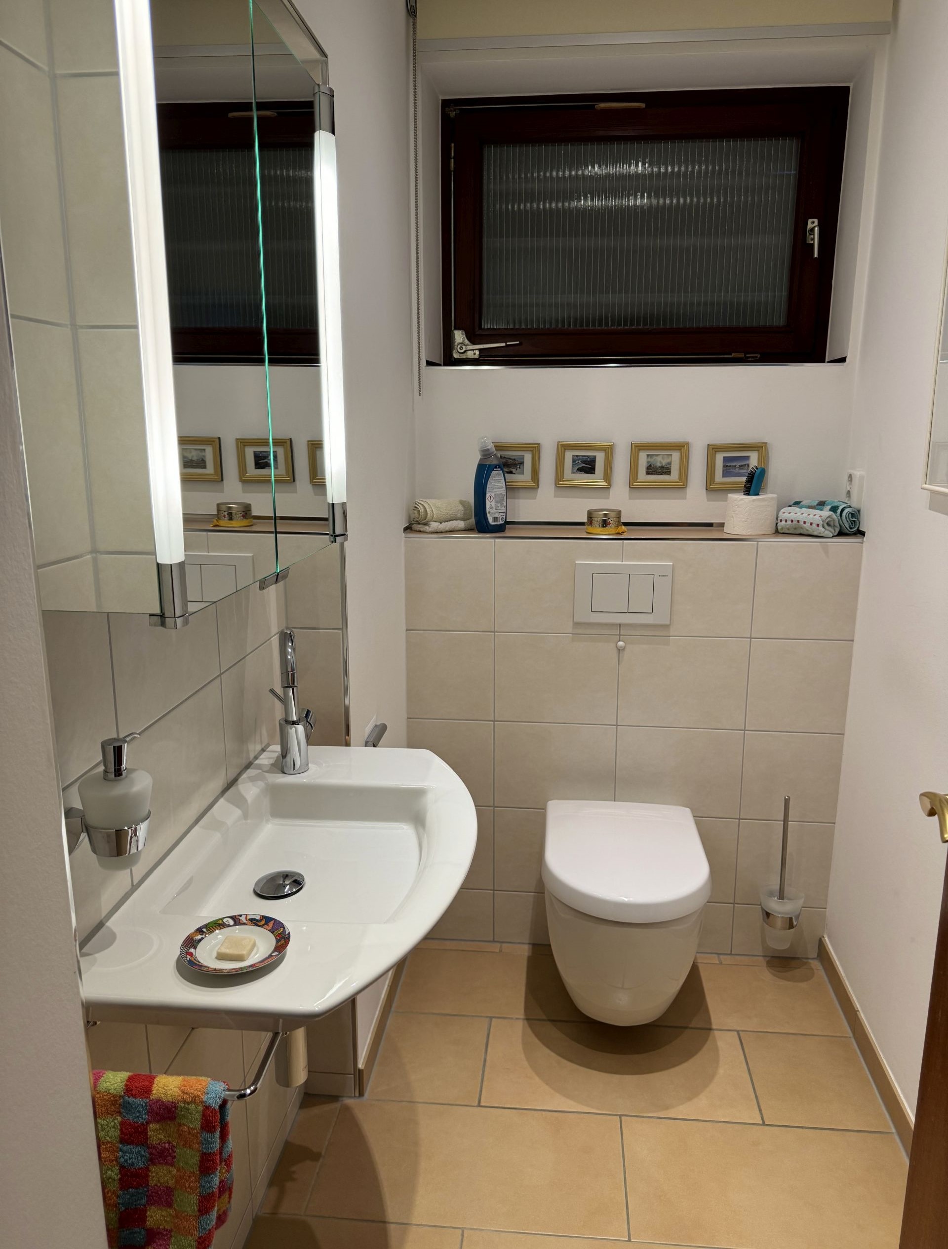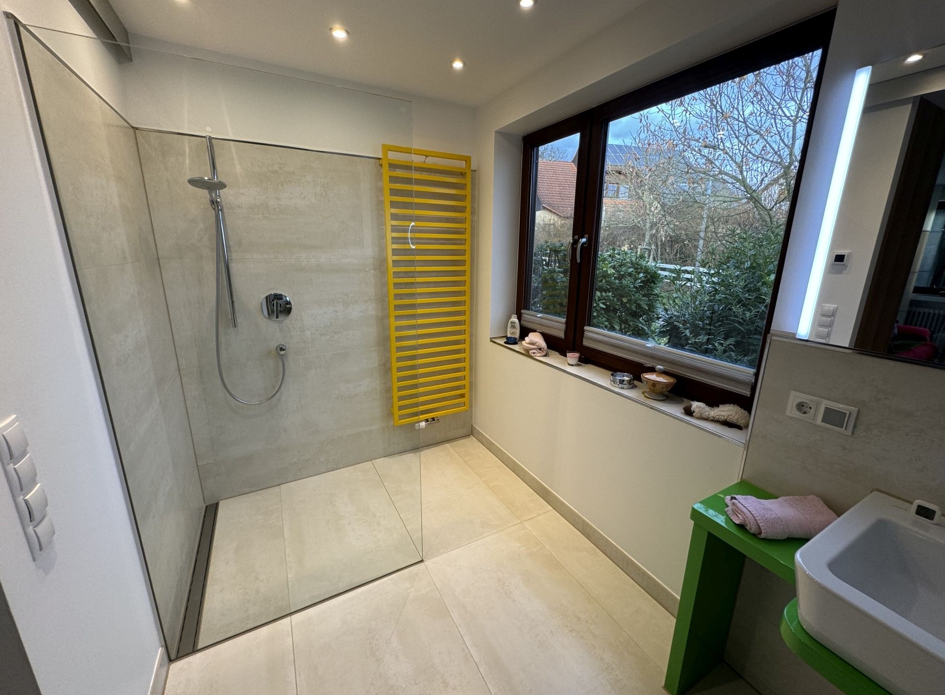 Tageslichtbad: 2015 ist das Tageslichtbad umgebaut und saniert worden; 2024 sind die Armaturen der Dusche ausgetauscht worden.
