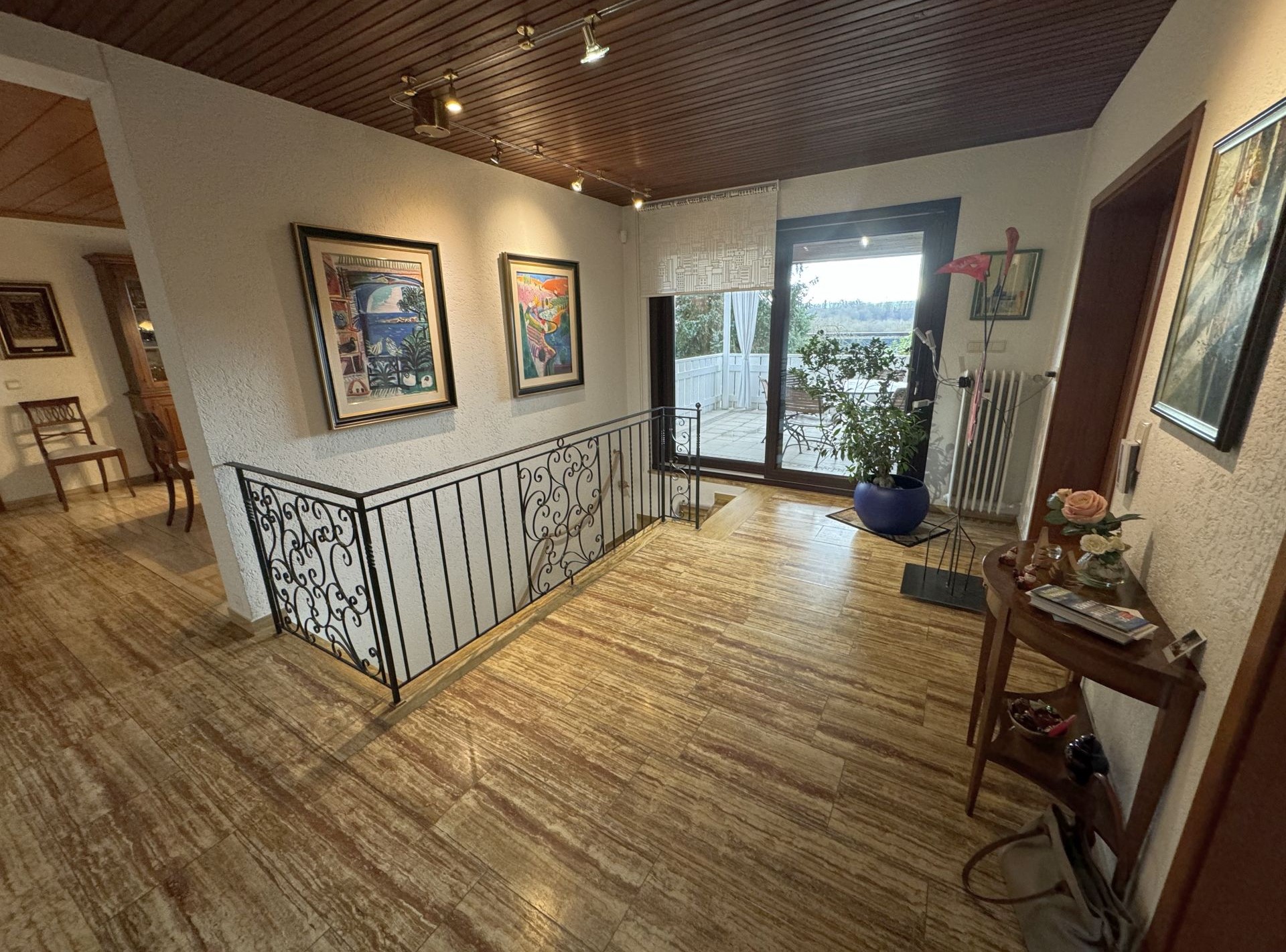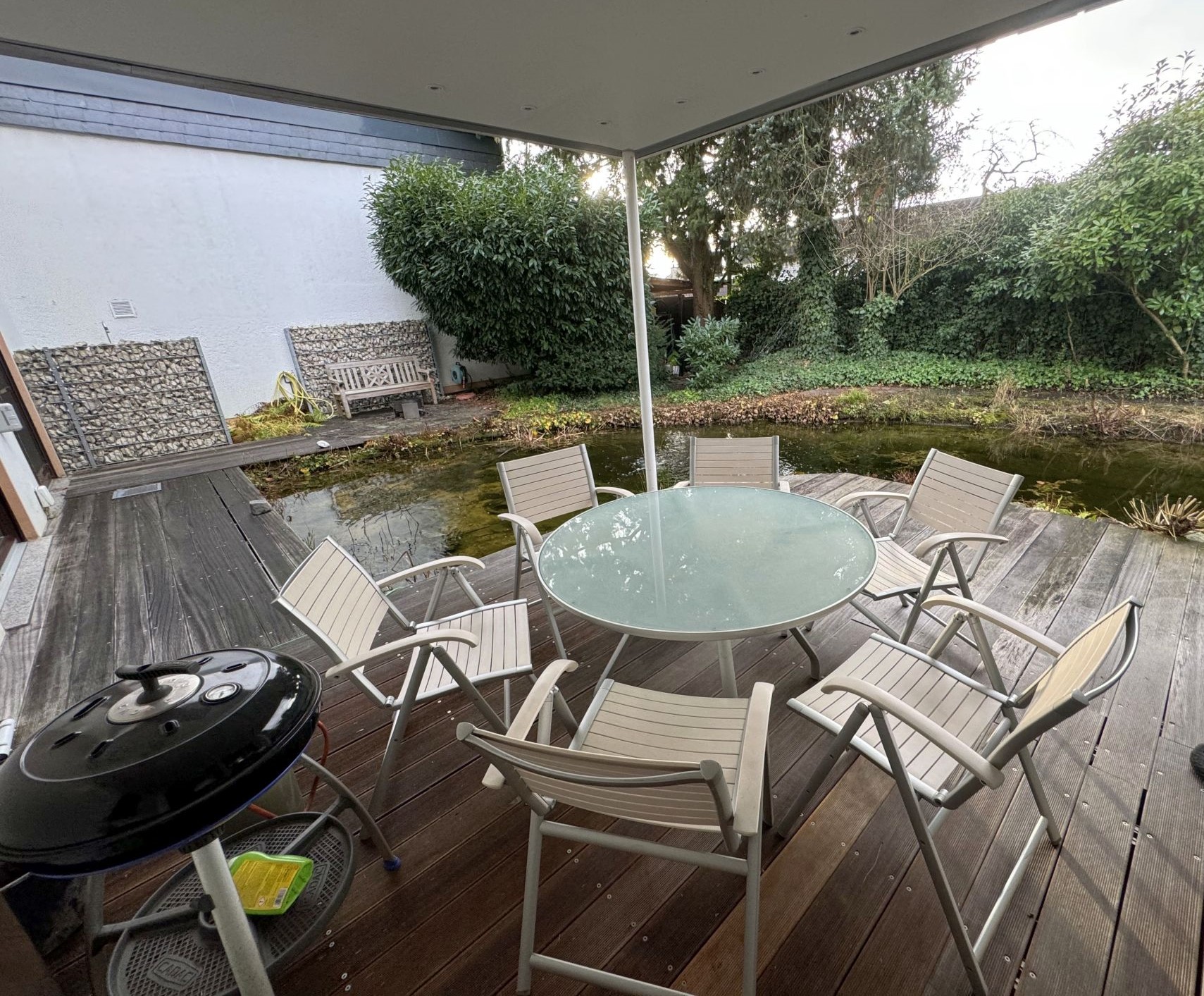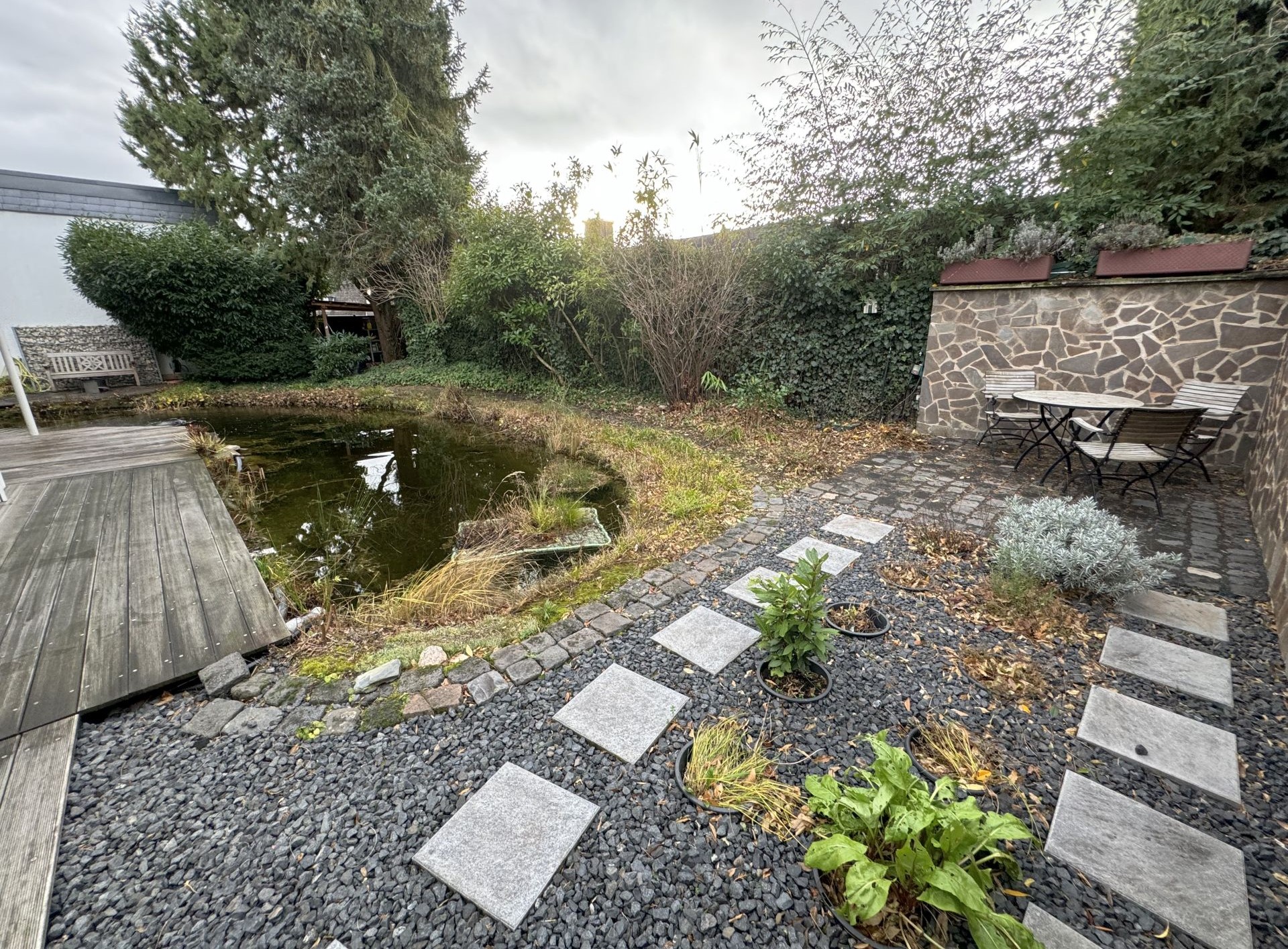 Ein gemütliches Kaminzimmer lädt zu entspannten Abenden ein. Ein separates Schlafzimmer sowie ein vielseitig nutzbares Hobbyzimmer bieten Raum für individuelle Gestaltungsmöglichkeiten. Außerdem bieten Kamin- und Schlafzimmer einen direkten Zugang zu Terrasse und Garten. Der gepflegte Garten mit einem großen Teich schafft eine idyllische Atmosphäre und eignet sich ideal für ruhige Stunden oder gesellige Anlässe im Freien.