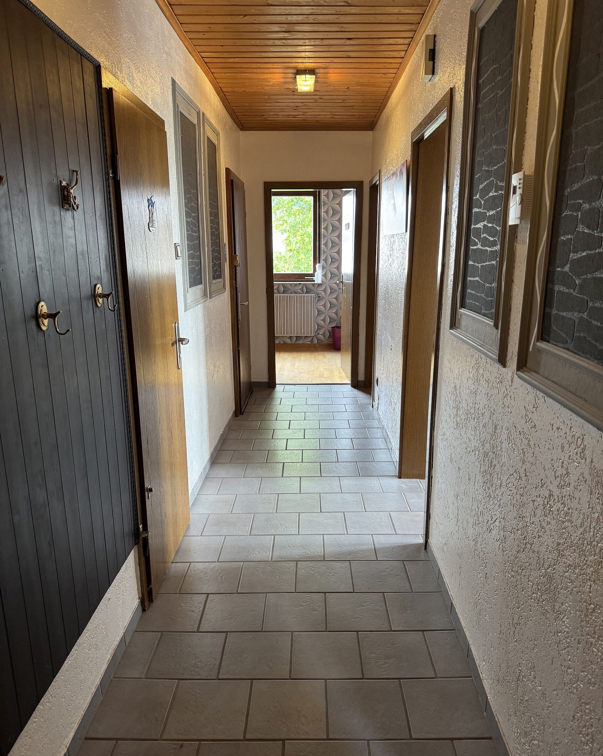 Die helle Küche bietet ausreichend Platz zum Kochen und Verweilen. Das Tageslichtbad ist mit einer Badewanne ausgestattet. Ein zentraler Flur verbindet alle Räume miteinander.