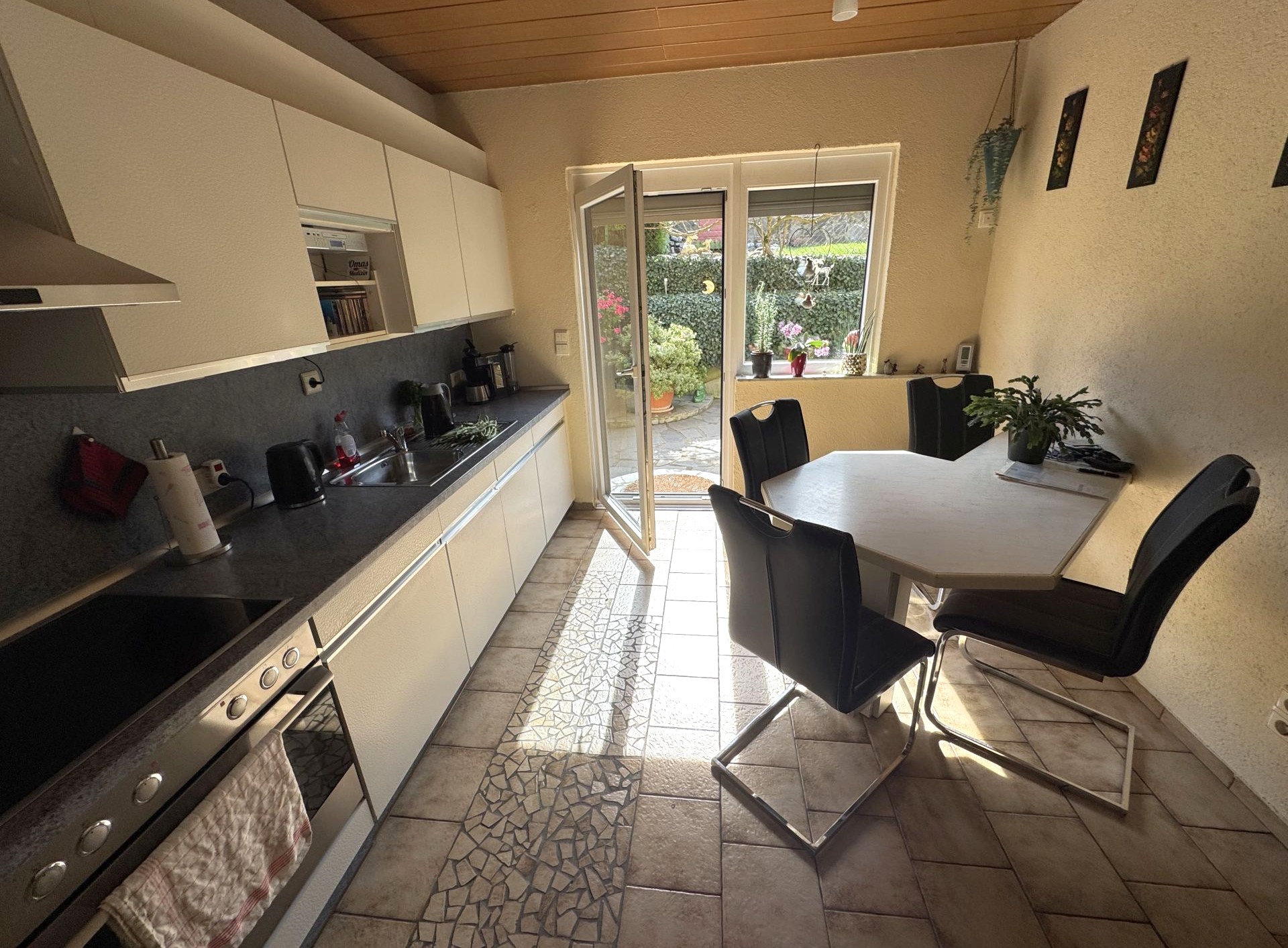 Wir bieten ihnen hier eine charmante Doppelhaushälfte mit großzügiger Terrasse, angrenzendem Garten und eigenem Stellplatz zum Kauf an.