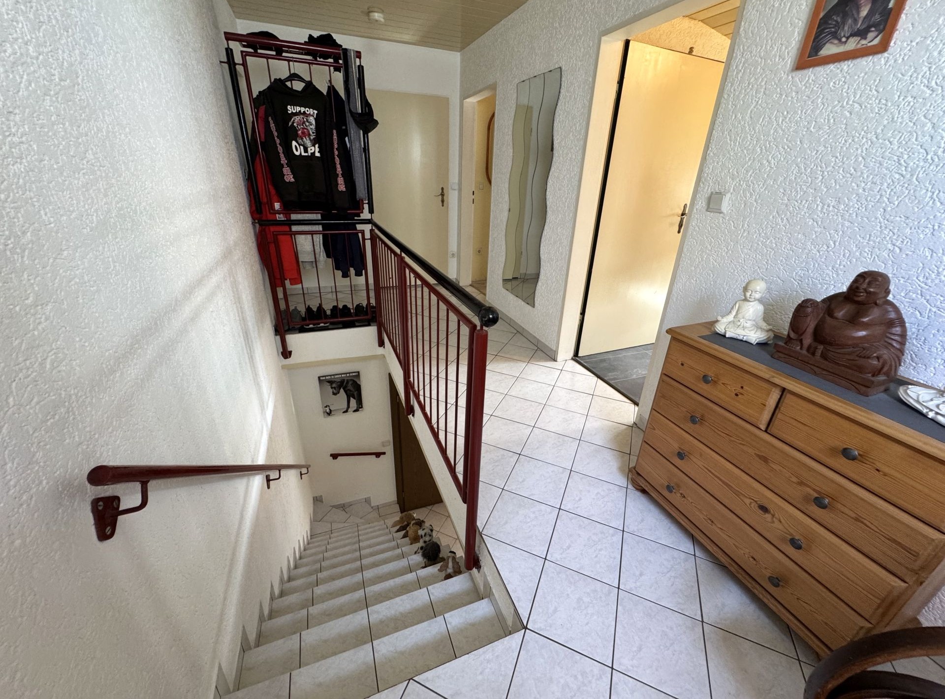 Durch das Treppenhaus gelangen Sie ins Obergeschoss. Dieses umfasst ca. 47 m². Dort erwarten sie: