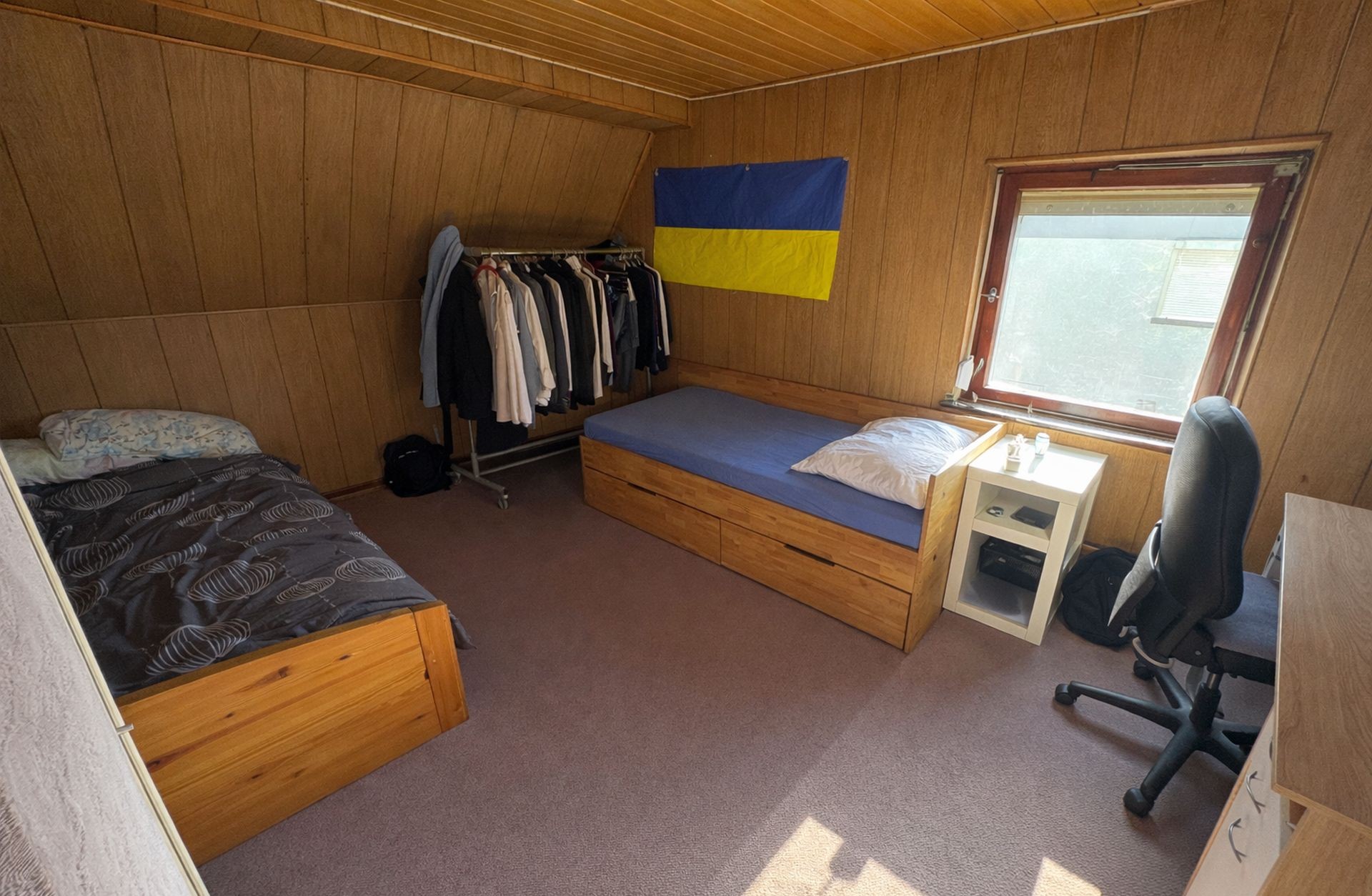 Im Erdgeschoss befindet sich das helle Wohnzimmer mit direktem Zugang zur Terrasse und zum Garten, wodurch ein fließender Übergang zwischen Innen- und Außenbereich entsteht. Ebenfalls auf dieser Ebene liegen die Küche, ein Tageslichtbad mit Dusche sowie ein hinter der Küche gelegener Hauswirtschaftsraum, der zusätzliche Abstell- und Nutzungsmöglichkeiten bietet.