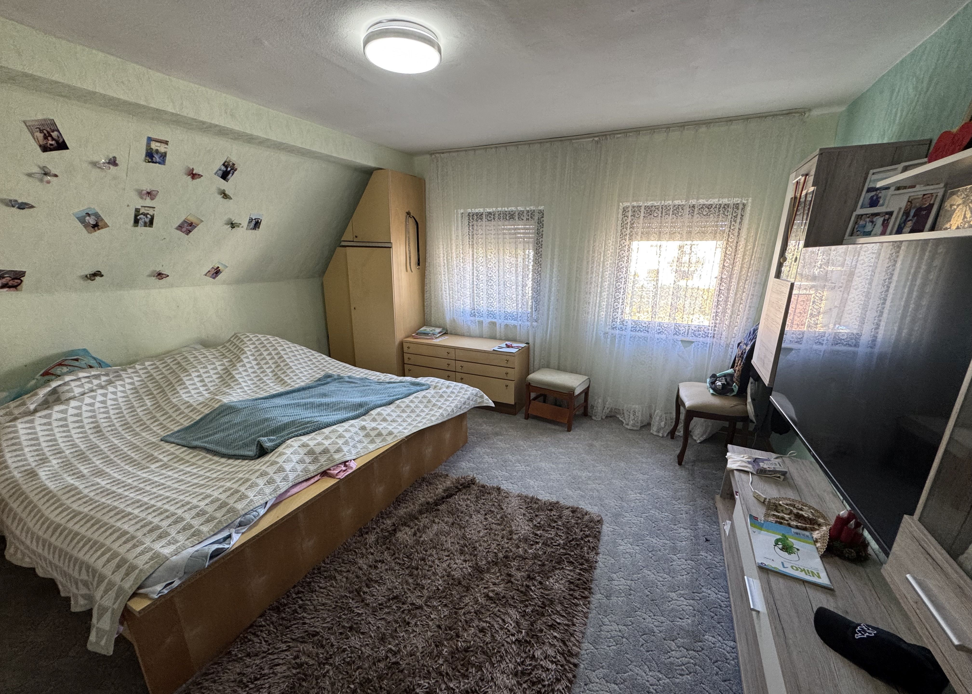 Das Haus verfügt über zwei Etagen und bietet insgesamt vier Zimmer. Ergänzt wird das Raumangebot durch ein Badezimmer, ein zusätzliches Gäste-WC sowie eine großzügige Küche.